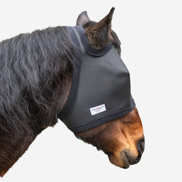 Unsere hochwertige Fliegenmaske schützt die empfindlichen Augen deines Pferdes zuverlässig vor Fliegen, Wind und starker Sonneneinstrahlung. Das feinmaschige, schwarze Netz sorgt für eine optimale Durchsicht, ohne das Sichtfeld einzuschränken – ideal für Weide, Paddock und Offenstall.
